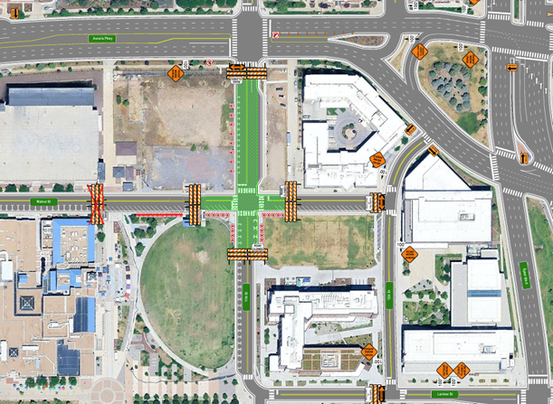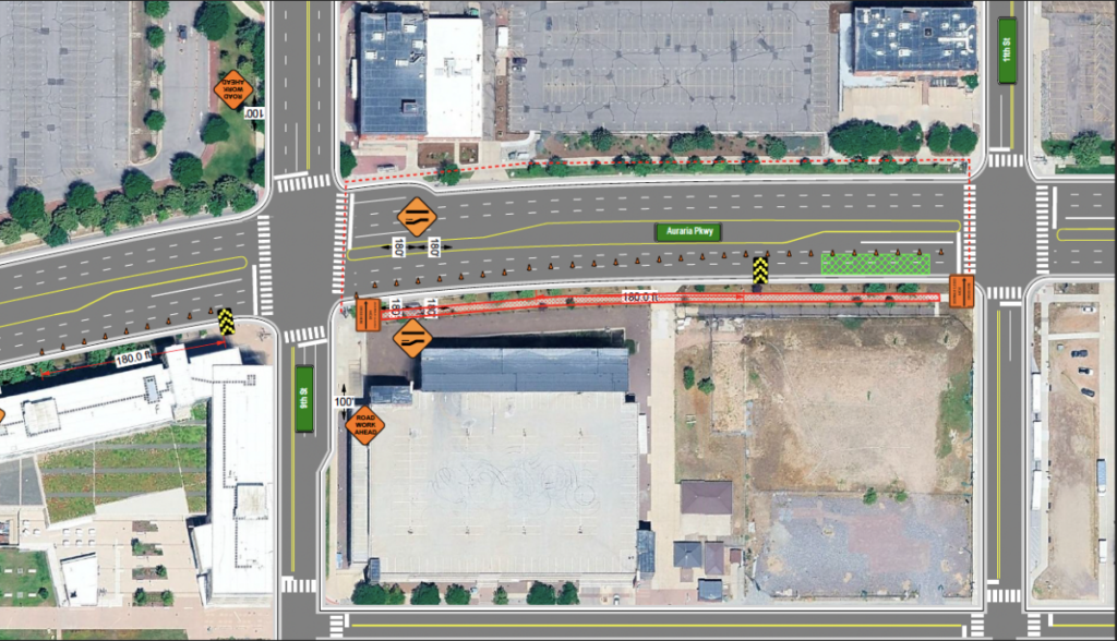 As part of ongoing infrastructure work, lane and sidewalk impacts will occur along Auraria Parkway between 9th Street and 11th Street.